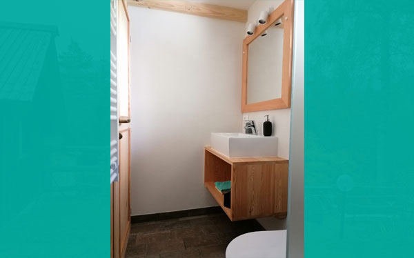 kopalnica tus /wc, spalni prostor z dvema enojnima posteljema